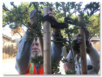 - When planting trees, trim broken branches, branches that are surpassing the lead branch and branches harmed by insect eggs and stings.